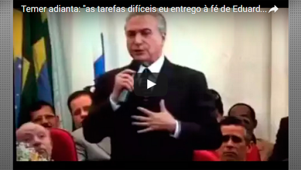 Temer adianta: "as tarefas difíceis eu entrego à fé de Eduardo Cunha"