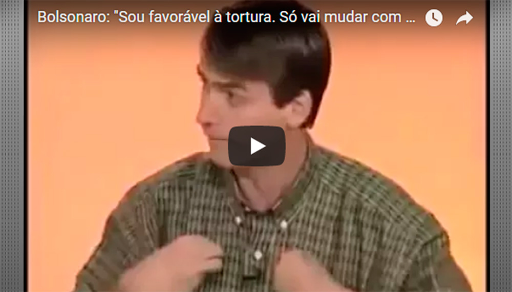 VÍDEO: 'Sou a favor da tortura. Através do voto, você não muda nada no país. Tem que matar 30 mil', diz Bolsonaro