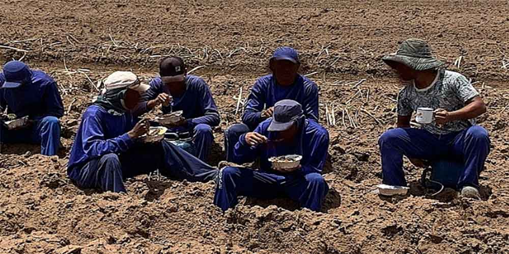 Comendo no chão sob o sol, vítimas foram atraídas por falsas promessas de boas condições de trabalho - MTP