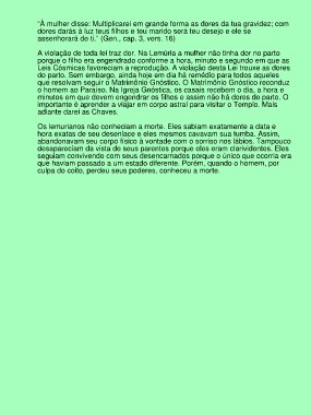 A violação de toda lei traz dor. Na Lemúria a mulher não tinha dor no parto