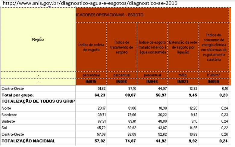 Conforme o Diagnóstico dos Serviços de Água e Esgotos do Sistema Nacional de Informações sobre Saneamento, relativo a 2016, apenas 57% do esgoto é coletado no Brasil. E desse total, 74,87% recebe tratamento, conforme a tabela.