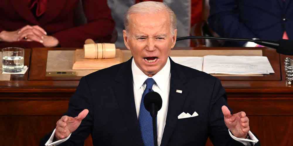O presidente dos EUA, Joe Biden, faz o discurso sobre o Estado da União © AFP / Andrew Caballero-Reynolds